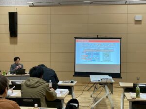 建築委員会では、熊本県から受託している「中大規模木造建築推進事業」の一環として、JAS製材勉強会を実施しました。改正建築基準法の施行に伴い、県林業研究センターや県木連の方を講師に招き、最新のJAS制度や強度に関する基礎知識、供給DB「もりんく」の活用、非木造の木造化推進について説明いただきました。